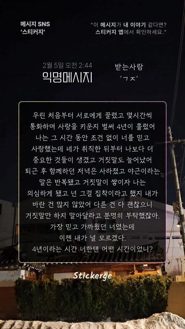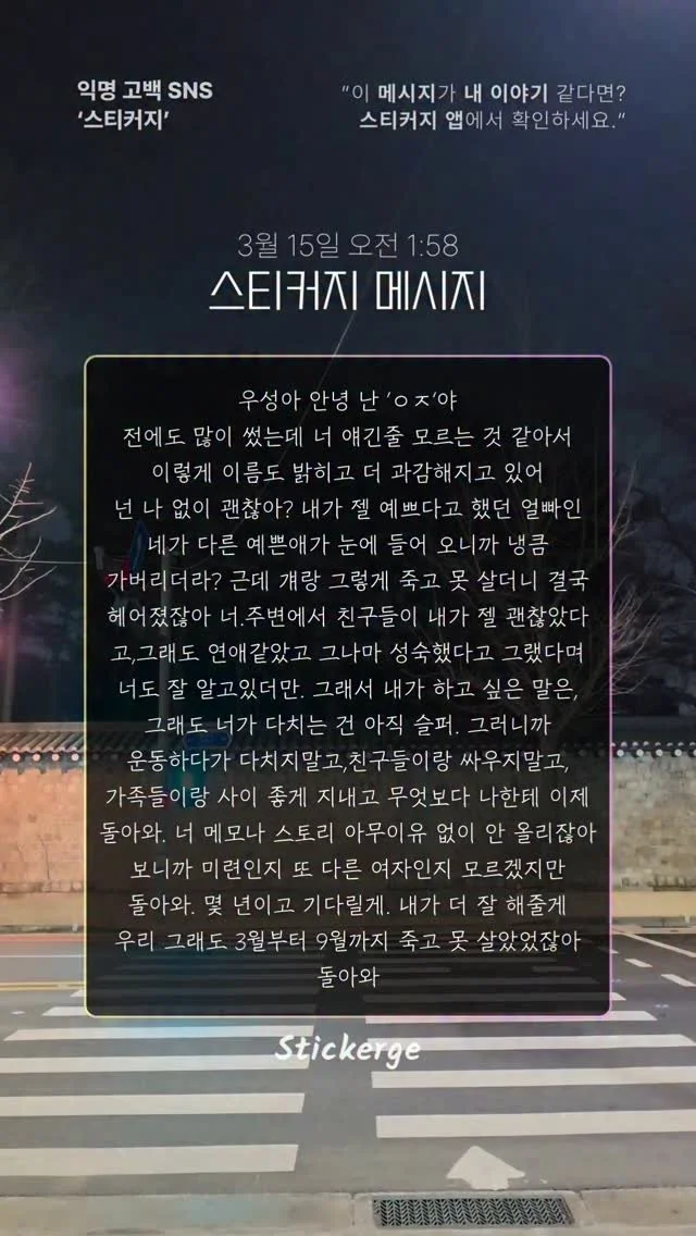 스티커지에 남겨진 메시지를 인스타 그램에 공유합니다.